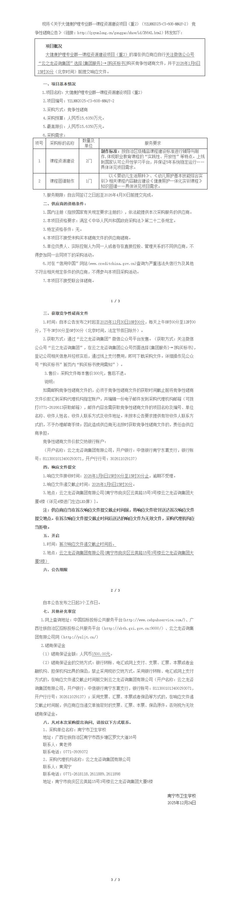 关于大健康护理专业群--课程资源建设项目(重2)竞争性磋商公告