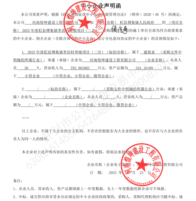 2025年度杞县傅集镇李店村养殖项目(二次)成交结果公告