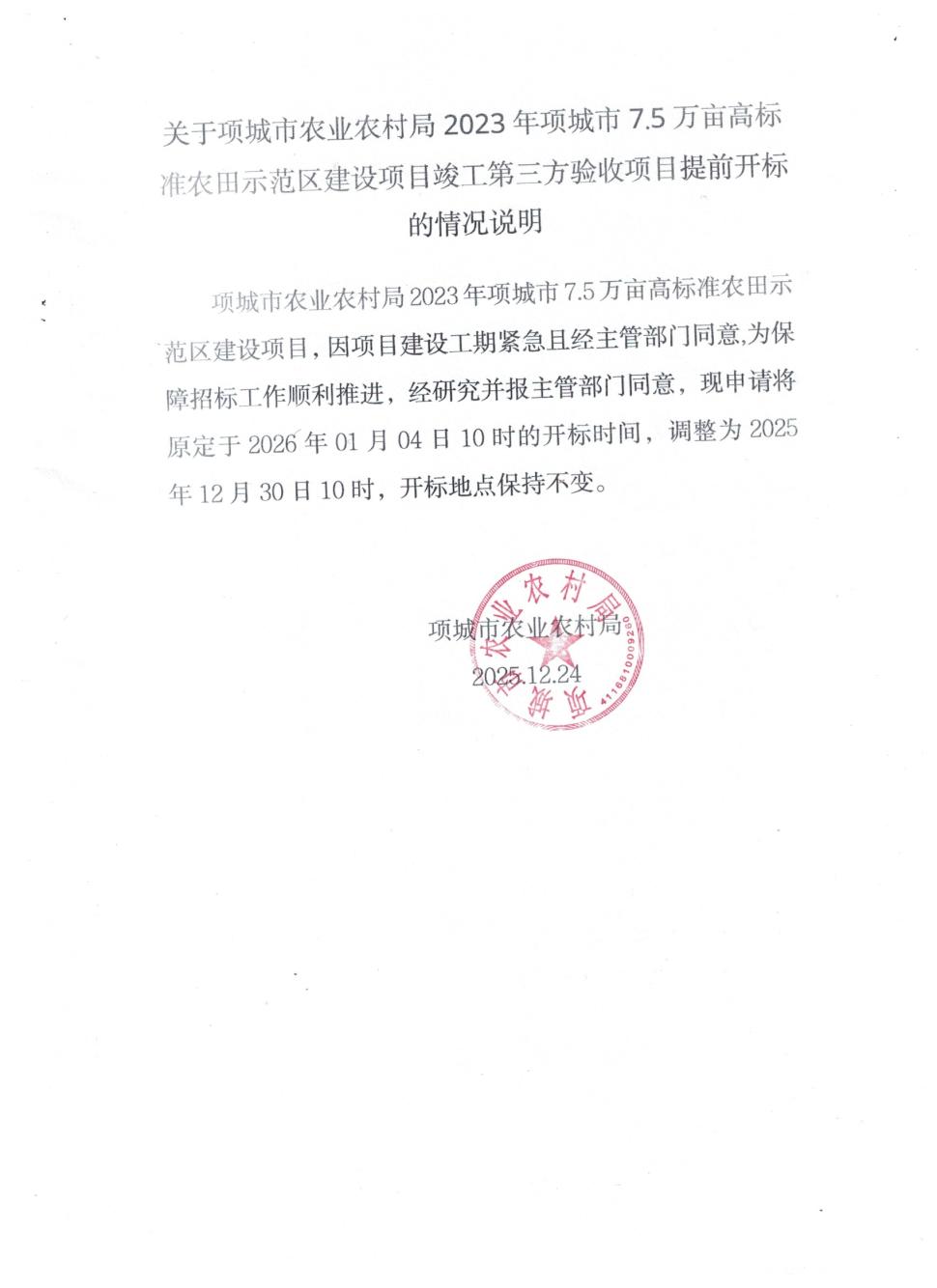 项城市农业农村局2023年项城市7.5万亩高标准农田示范区建设项目竣工第三方验收项目-更正公告