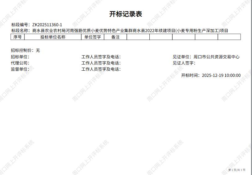 商水县农业农村局河南强筋优质小麦优势特色产业集群商水县2022年续建项目(小麦专用粉生产深加工)项目-废标(终止)公告