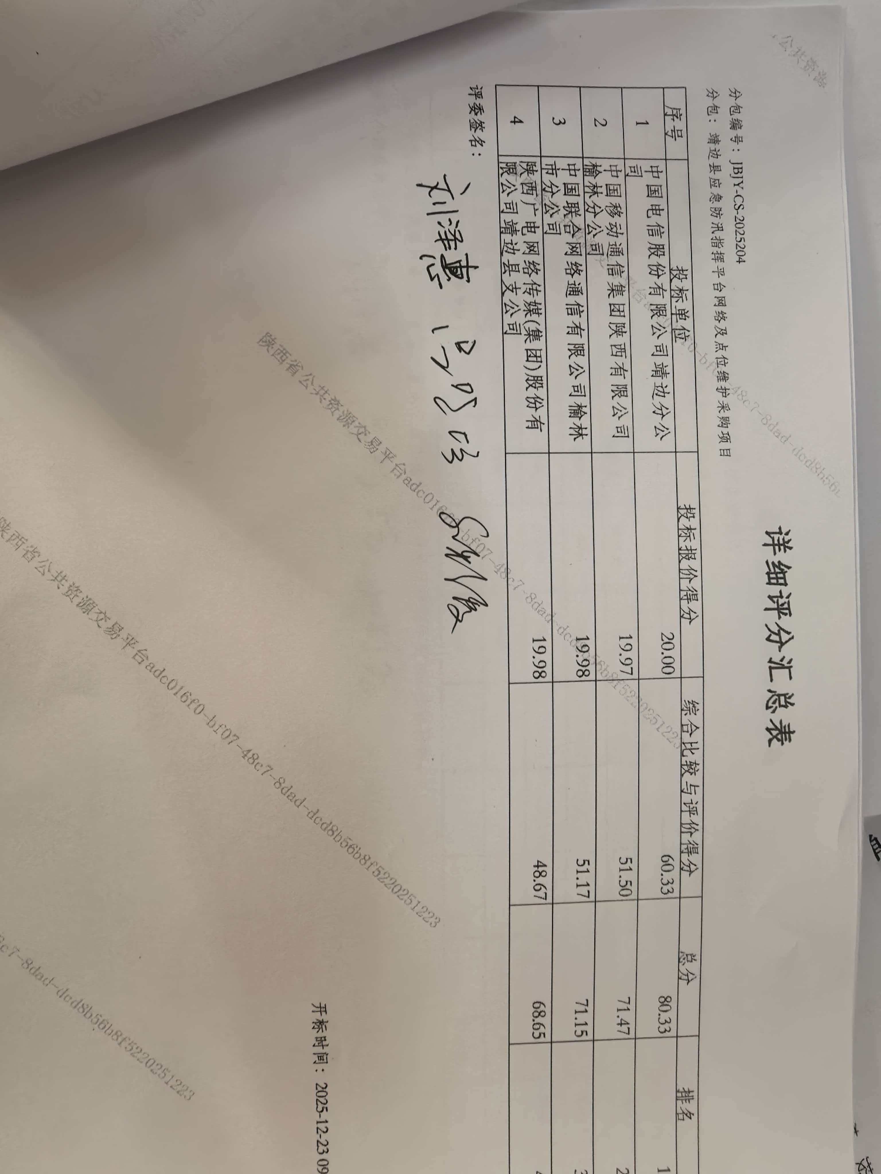 陕西/榆林 中标结果