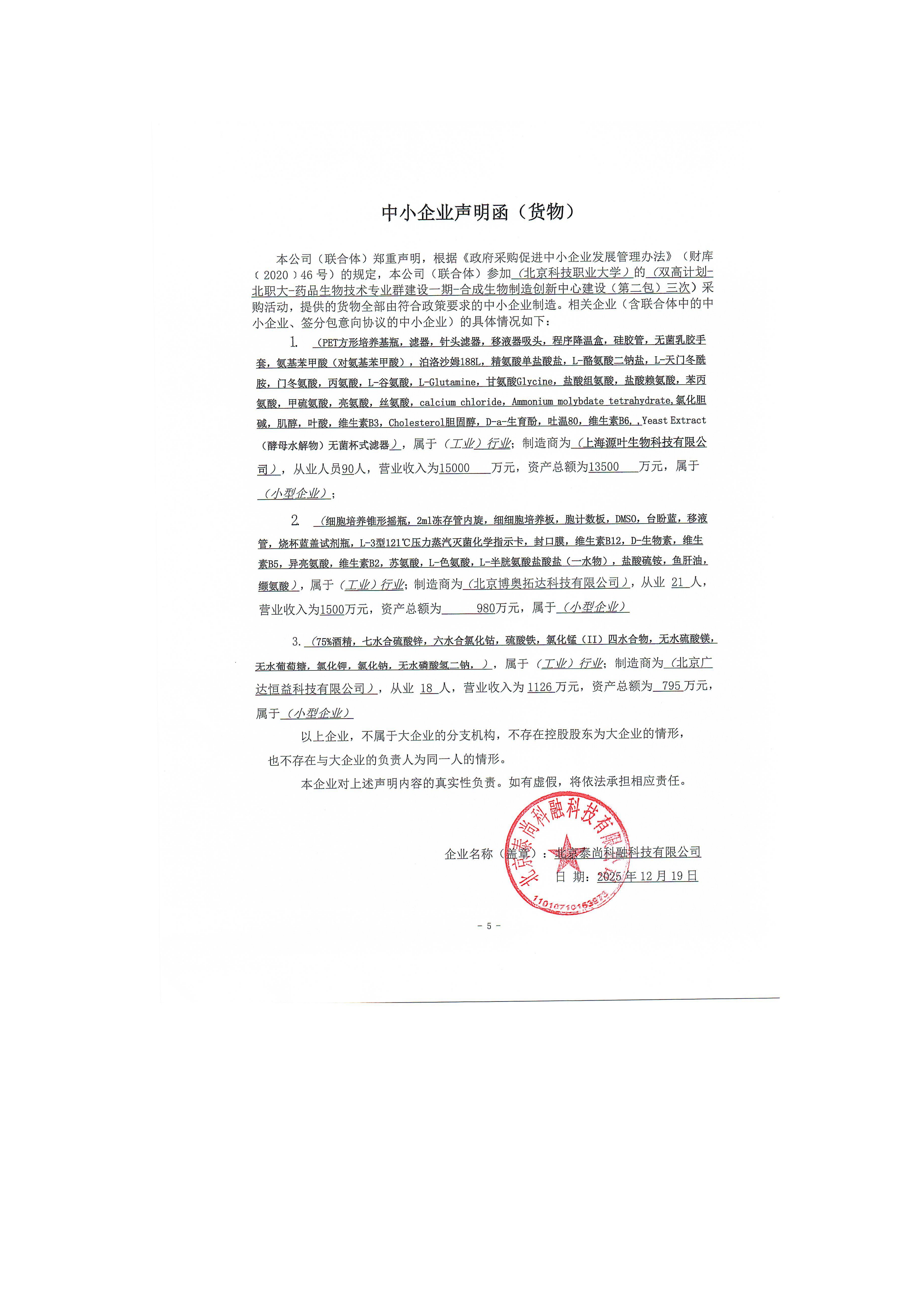 二、项目名称:双高计划*北职大*药品生物技术专业群建设一期*合成生物制造创新中心建设