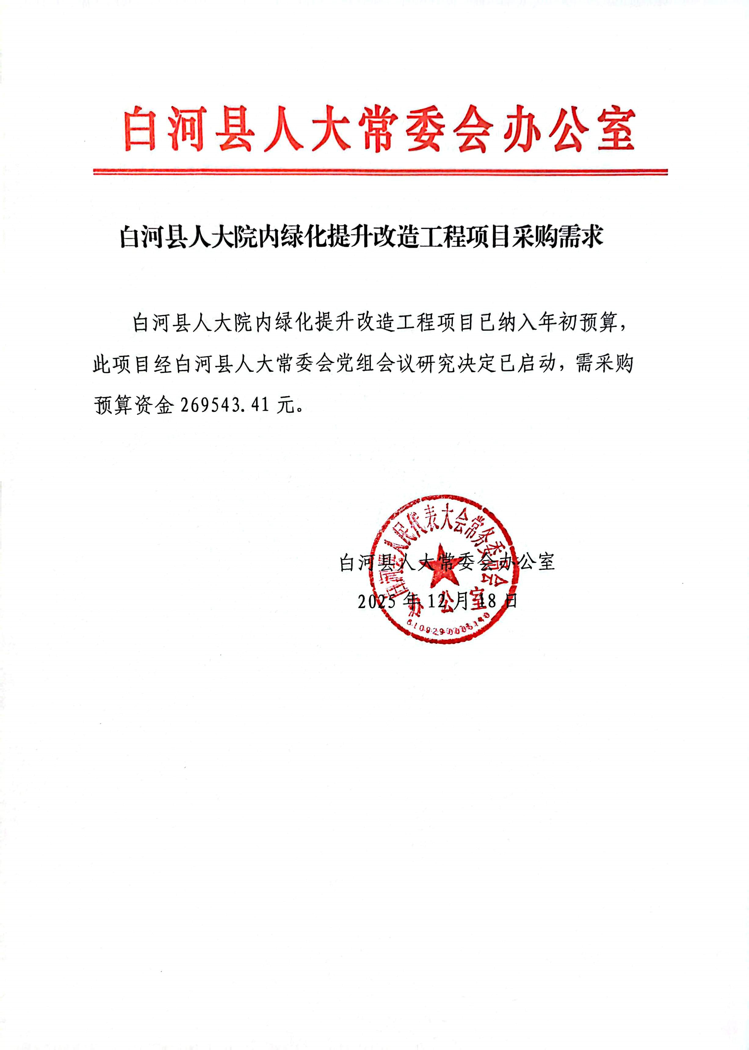 白河县人大院内绿化提升改造工程项目竞争性磋商公告