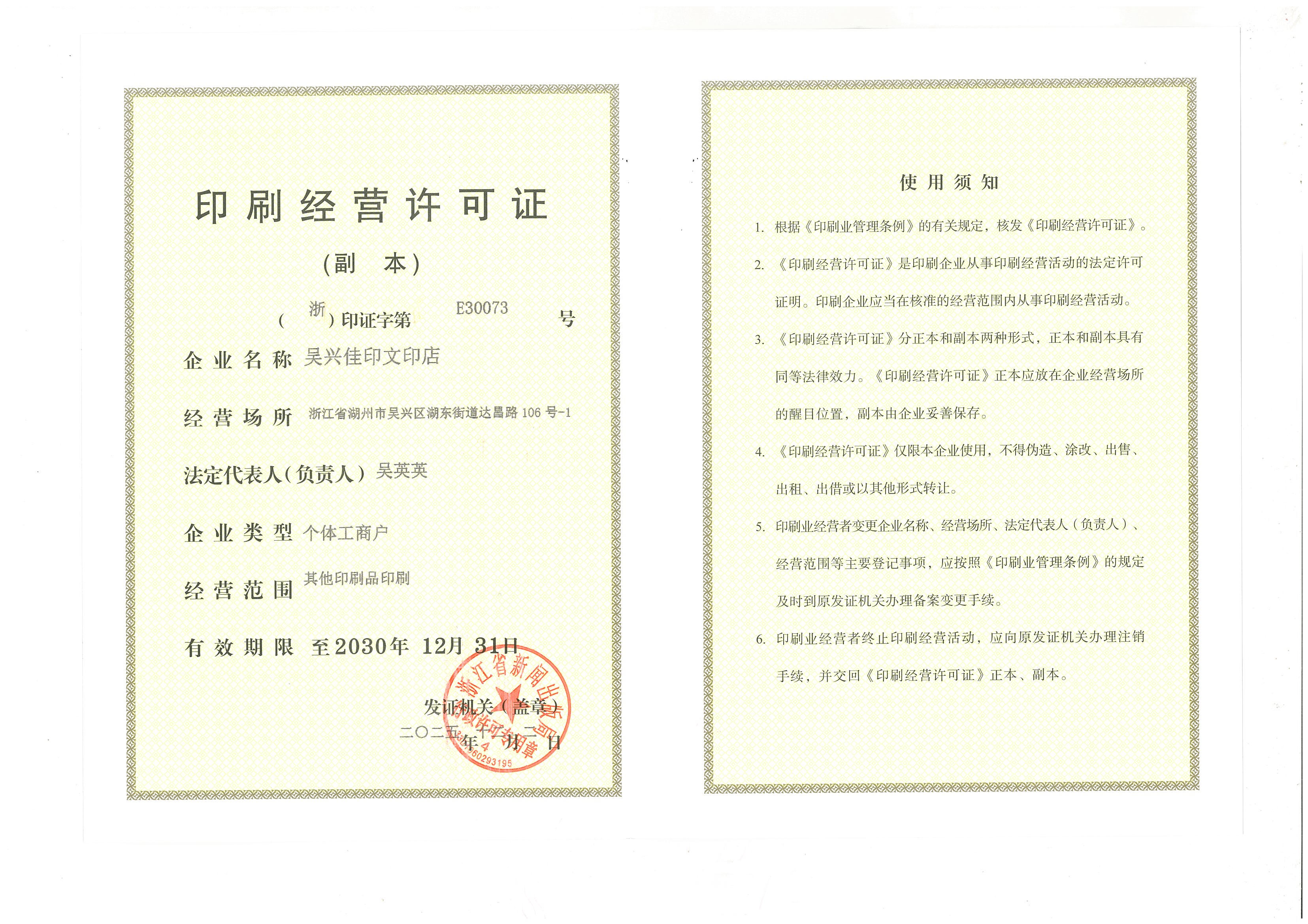 吴兴佳印文印店印刷服务(《印刷业管理条例》其他印刷品