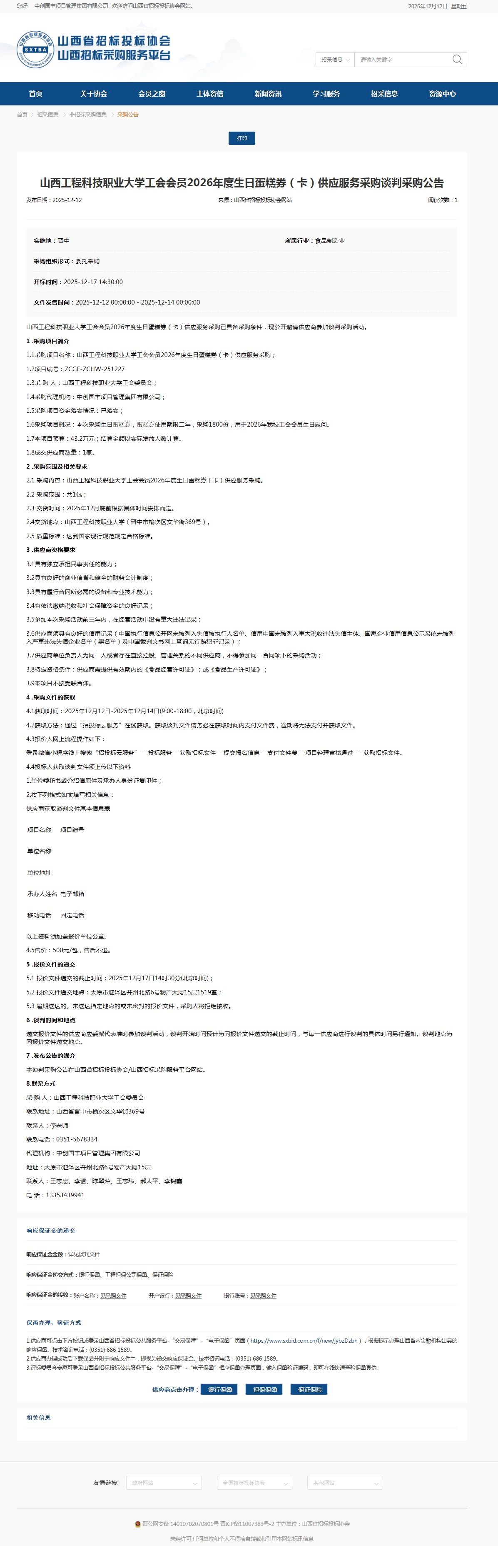 卡供应项目谈判公告