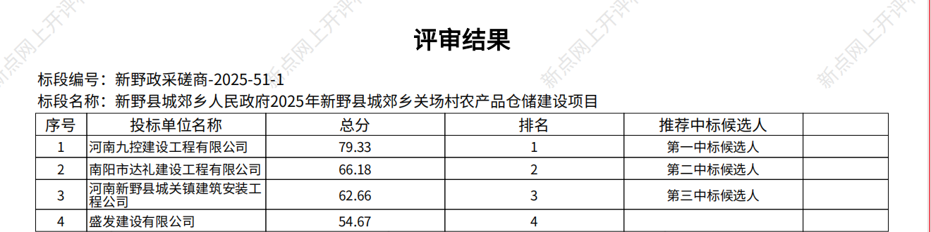 新野县城郊乡人民政府2025年新野县城郊乡关场村农产品仓储建设项目-成交公告