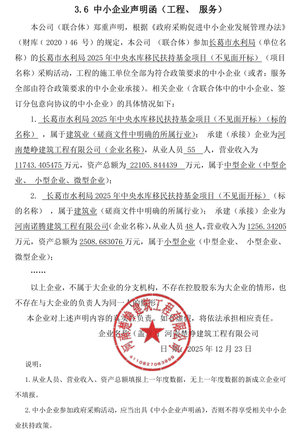 长招采磋商〔2025〕012 号长葛市水利局2025年中央水库移民扶持基金项目(不见面开标)-成交公告