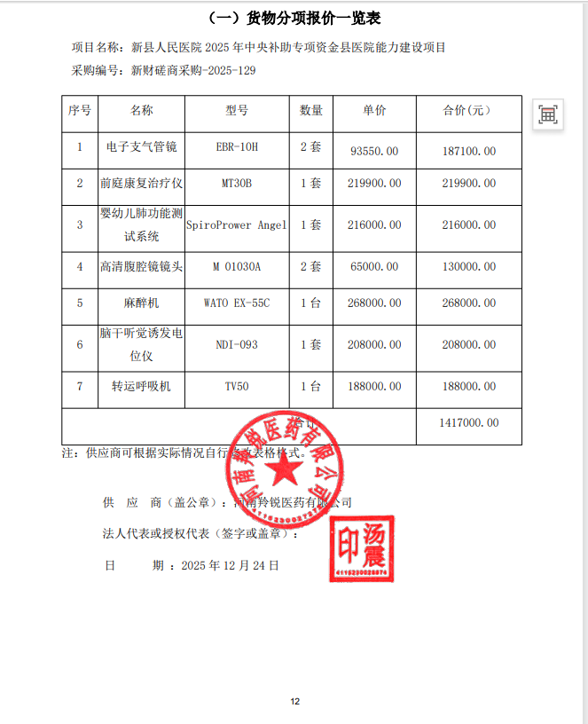 新县人民医院2025年中央补助专项资金县医院能力建设项目-成交公告结果公告