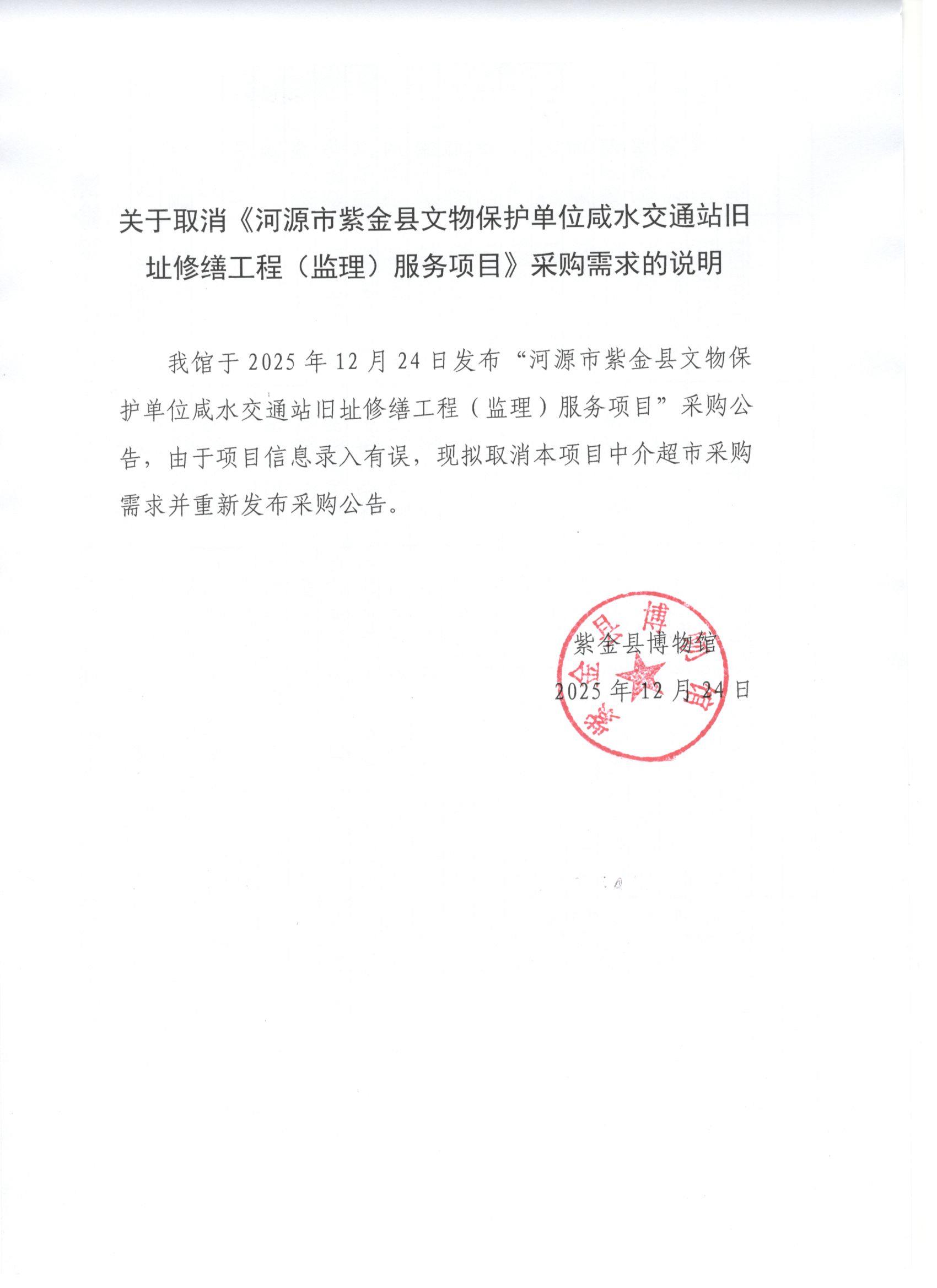 关于【河源市紫金县文物保护单位咸水交通站旧址修缮工程(监理)服务项目】采购失败项目的公示
