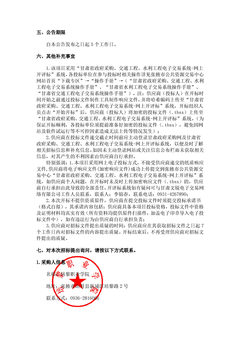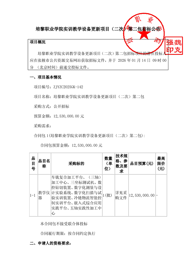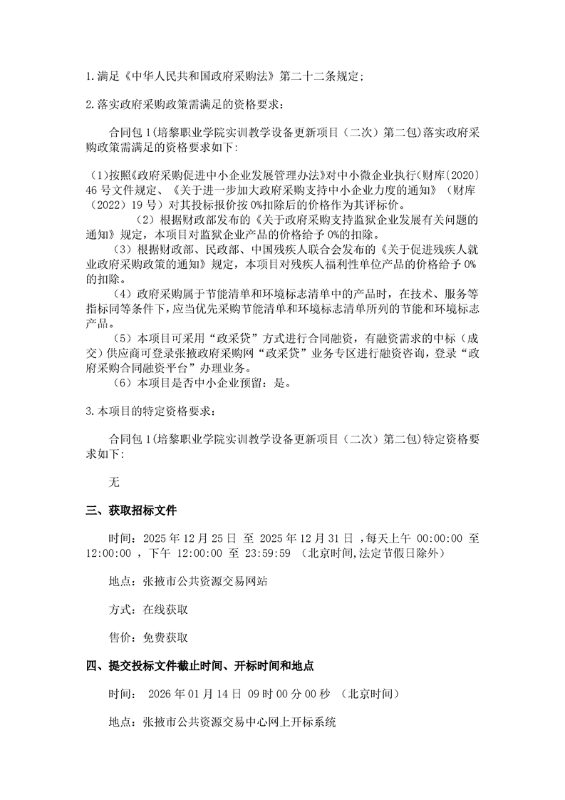 培黎职业学院实训教学设备更新项目(二次)第二包招标公告
