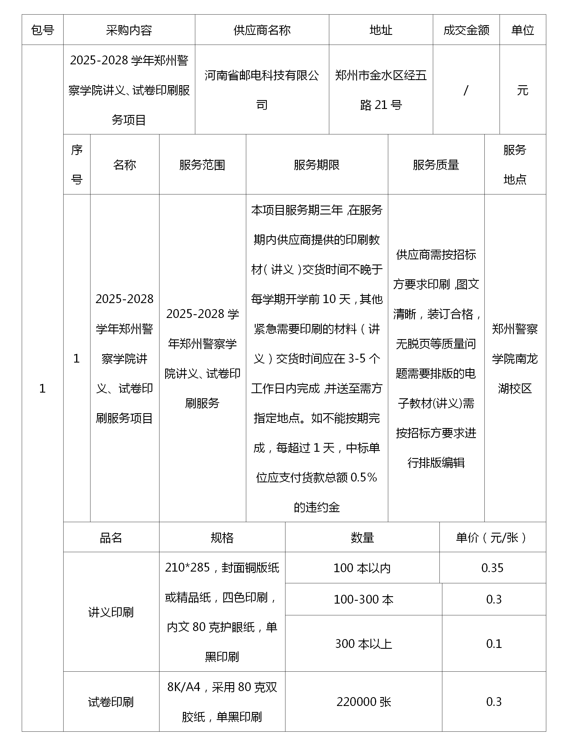 *、采购项目名称:*********学年郑州警察学院讲义、试卷印刷服务项目