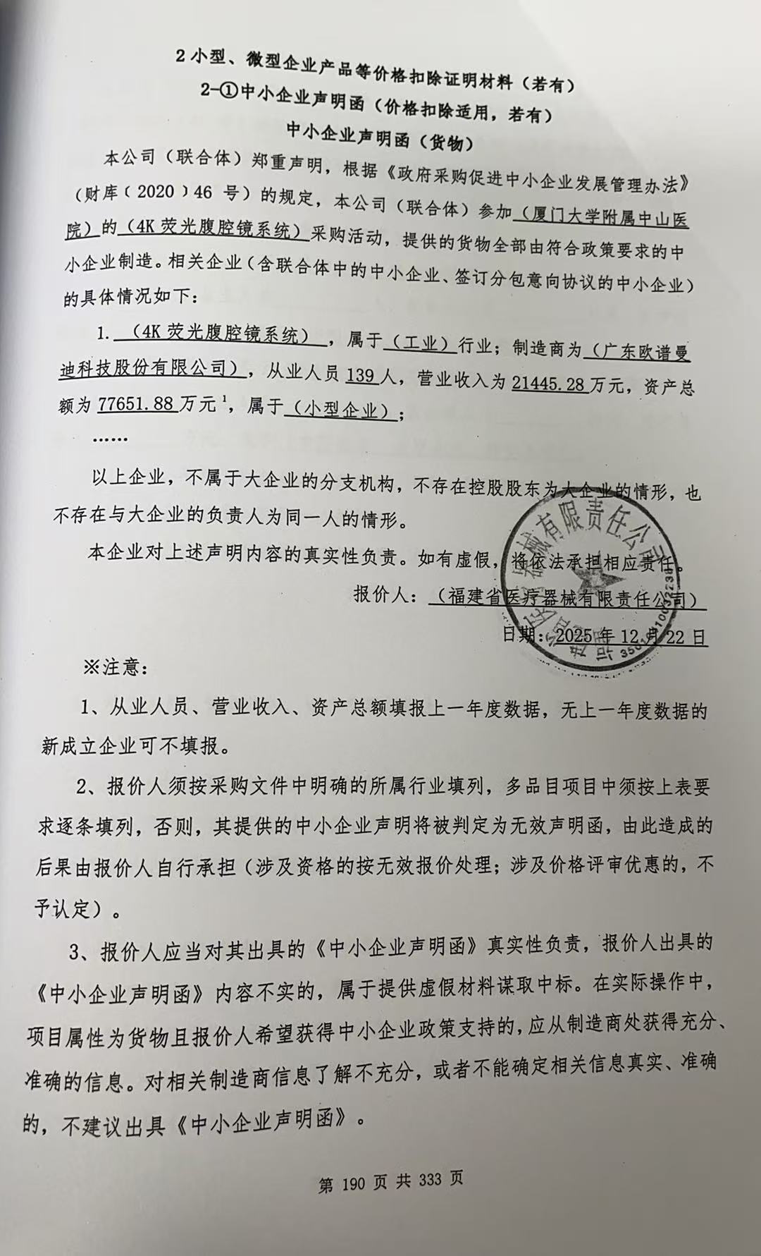 厦门万翔*竞争性磋商**************** **荧光腹腔镜系统成交结果公告