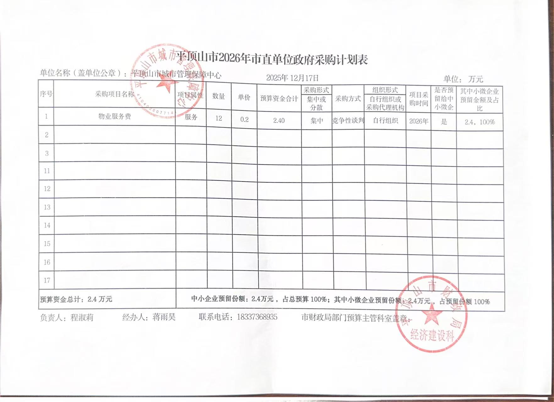 | 二、合同名称:市城管保障中心****年物业保洁费 | ||||||||||||