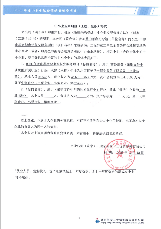 二、项目名称:****年香山革命纪念馆保安服务项目