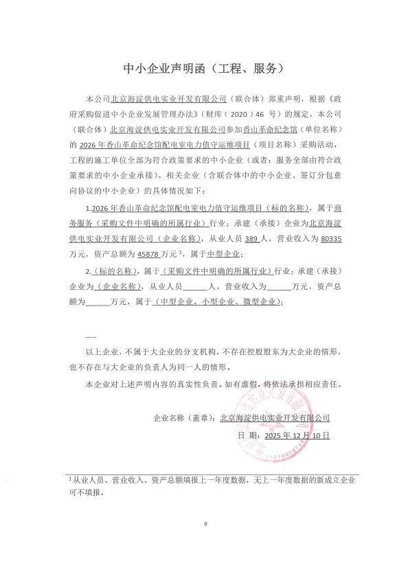 二、项目名称:****年香山革命纪念馆配电室电力值守运维项目
