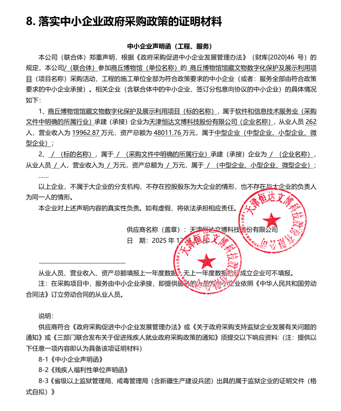 | *、采购项目名称:商丘博物馆馆藏文物数字化保护及展示利用项目 | |||||||||||||||||||||||||||||||