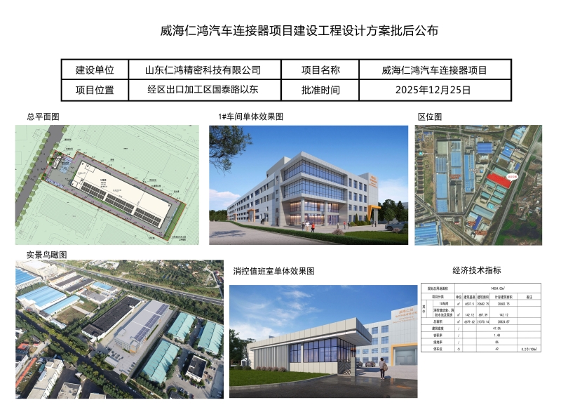 威海仁鸿汽车连接器项目建设工程设计方案批后公布