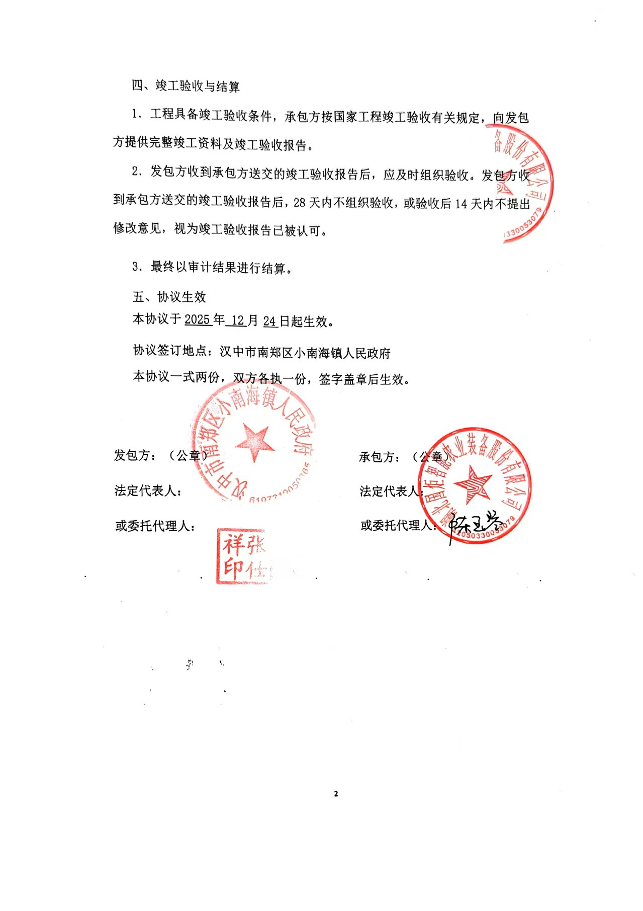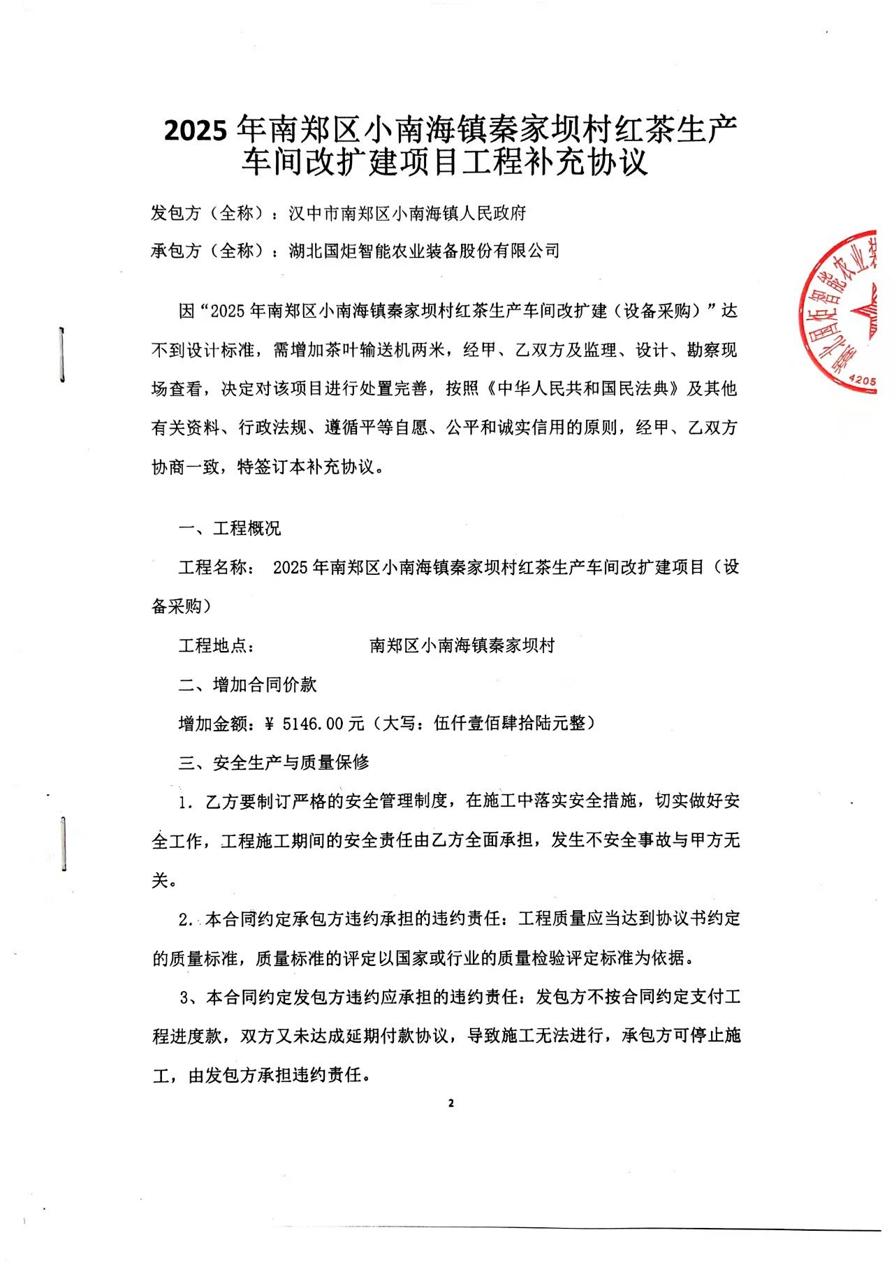 汉中市南郑区小南海镇人民政府2025年度南郑区小南海镇秦家坝村红茶生产车间改扩建项目(二次)政府采购合同公告