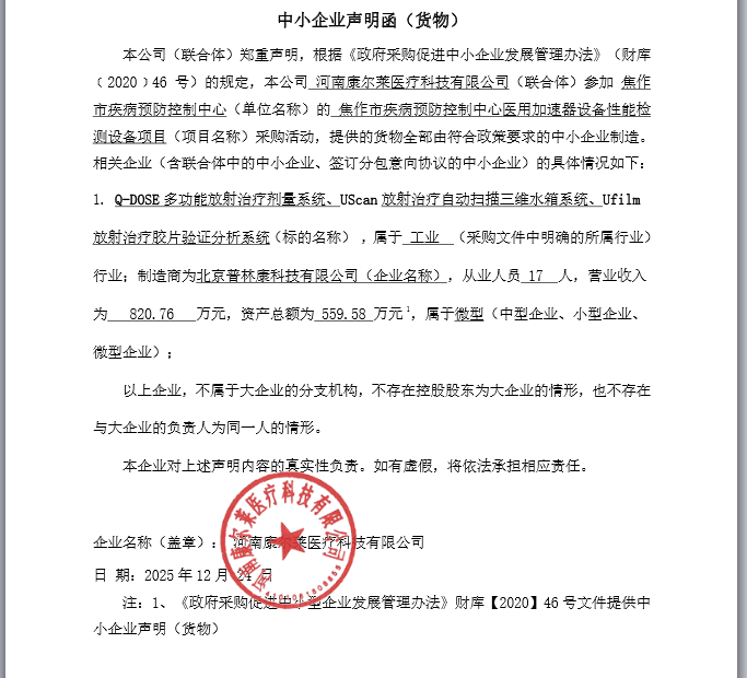 焦作市疾病预防控制中心医用加速器设备性能检测设备项目-中标公告