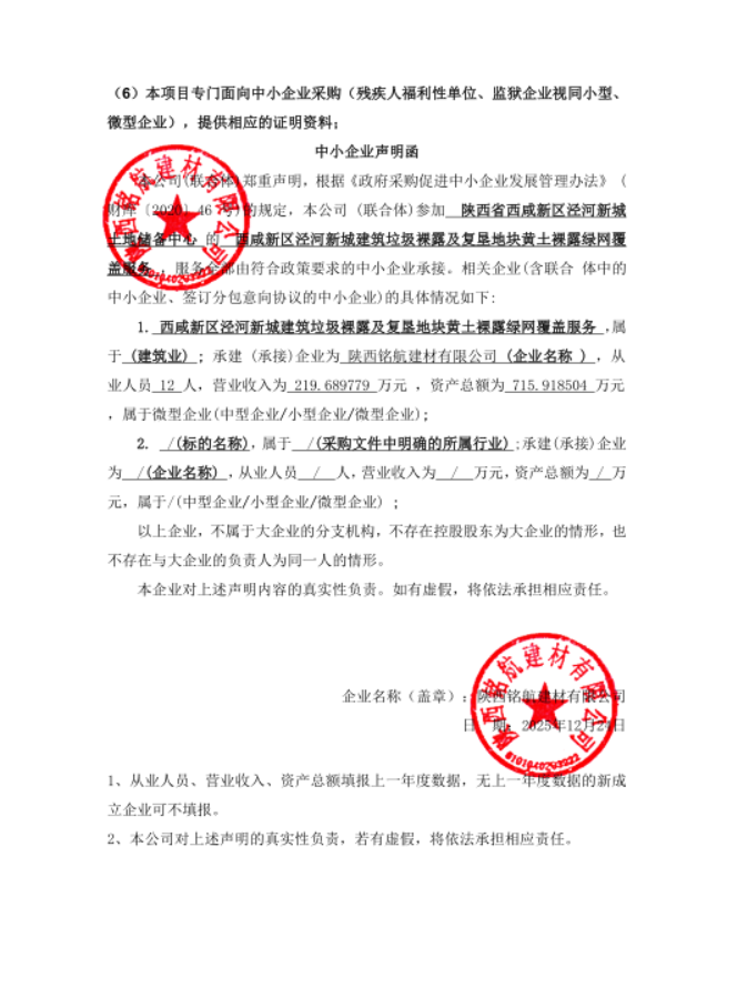 陕西省西咸新区泾河新城土地储备中心西咸新区泾河新城建筑垃圾裸露及复垦地块黄土裸露绿网覆盖服务中标结果公告