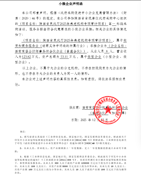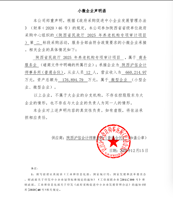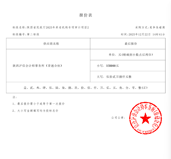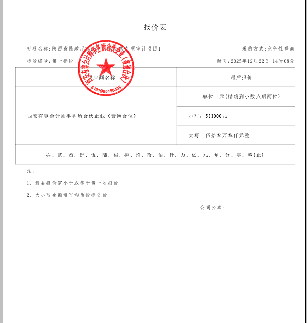 陕西省民政厅机关2025年养老机构专项审计项目中标(成交)结果公告