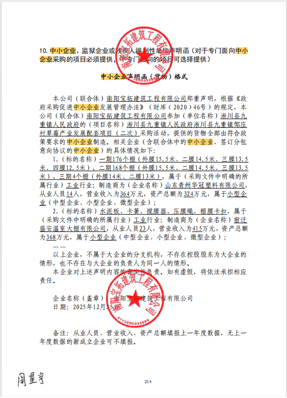 淅川县九重镇人民政府淅川县九重镇邹庄村草莓产业发展配套项目-中标公告