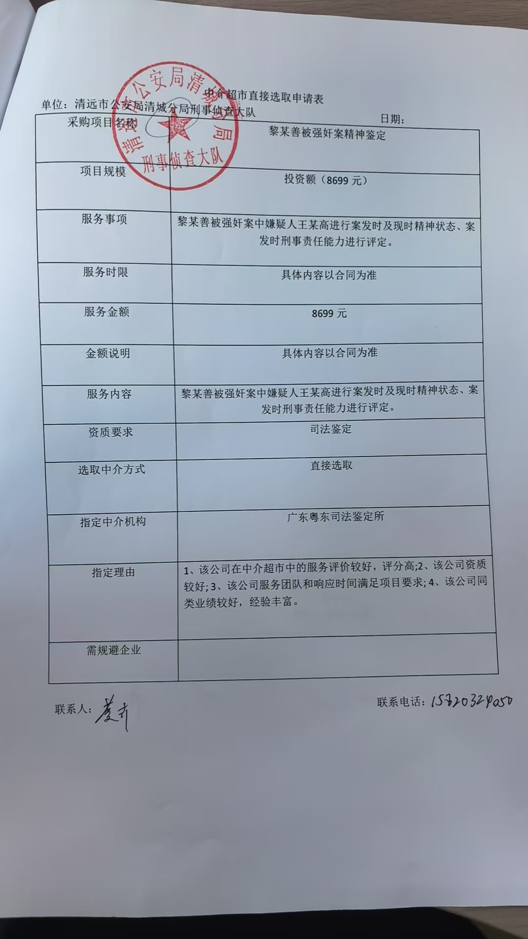 我单位于********** **:**, 在广东省网上中介服务超市为清远市公安局清城分局公开选取司法鉴定中介服务机构,现将中选结果相关事项公告如下:
