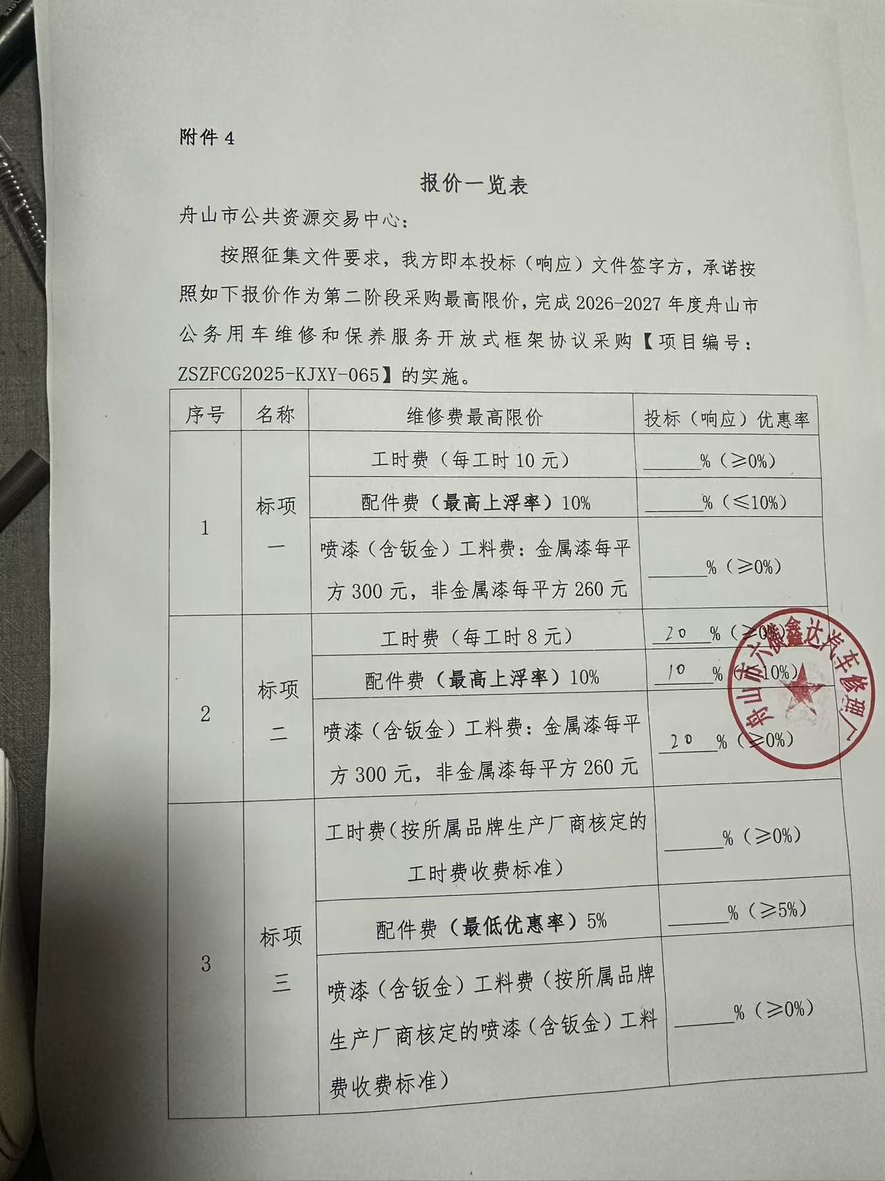 舟山市六横鑫达汽车修理厂入围2026-2027年度舟山市公务用车维修和保养服务开放式框架协议采购项目的结果公告