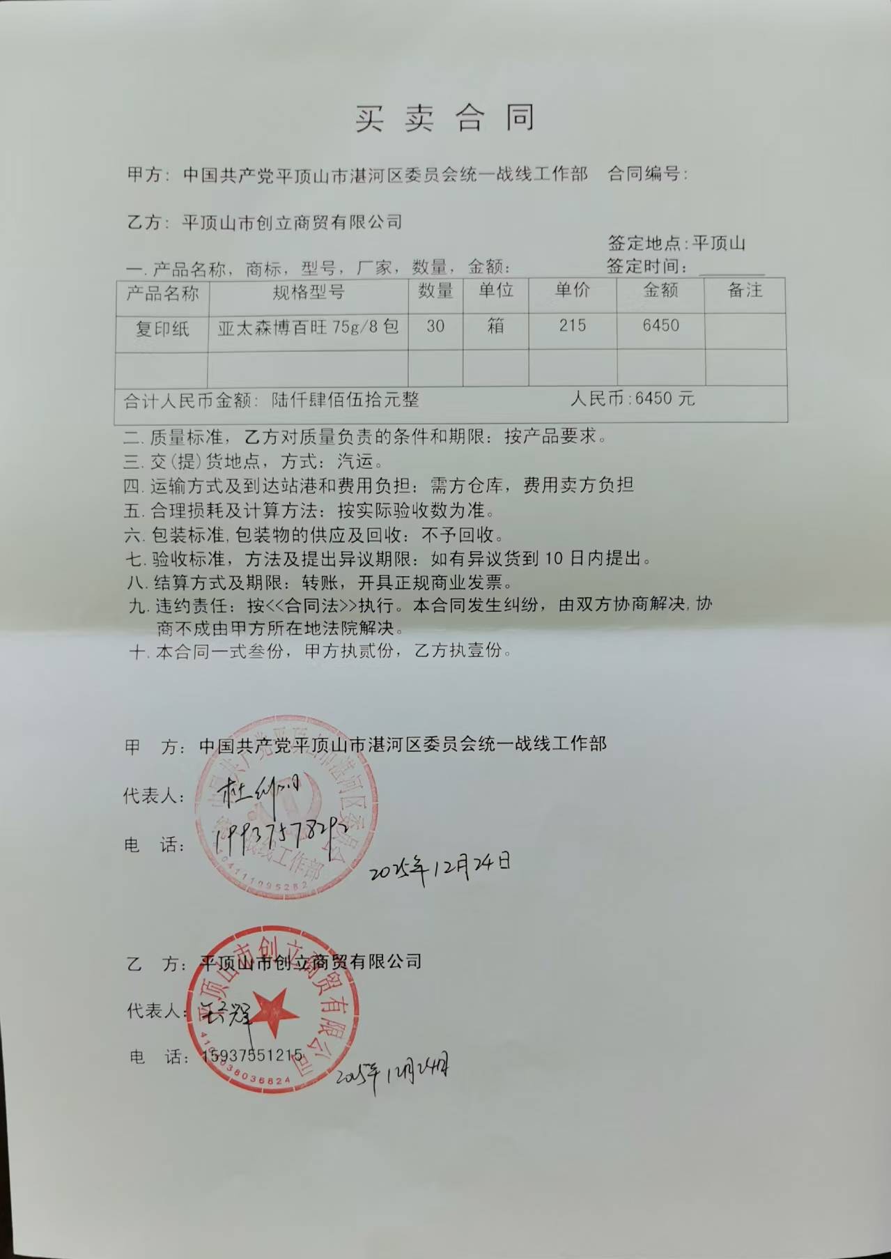 | *.供应商(乙方):平顶山市创立商贸有限公司 | ||||||||||||