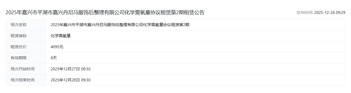 丹尼马服饰后整理有限公司化学需氧量协议租赁第2期租赁公告