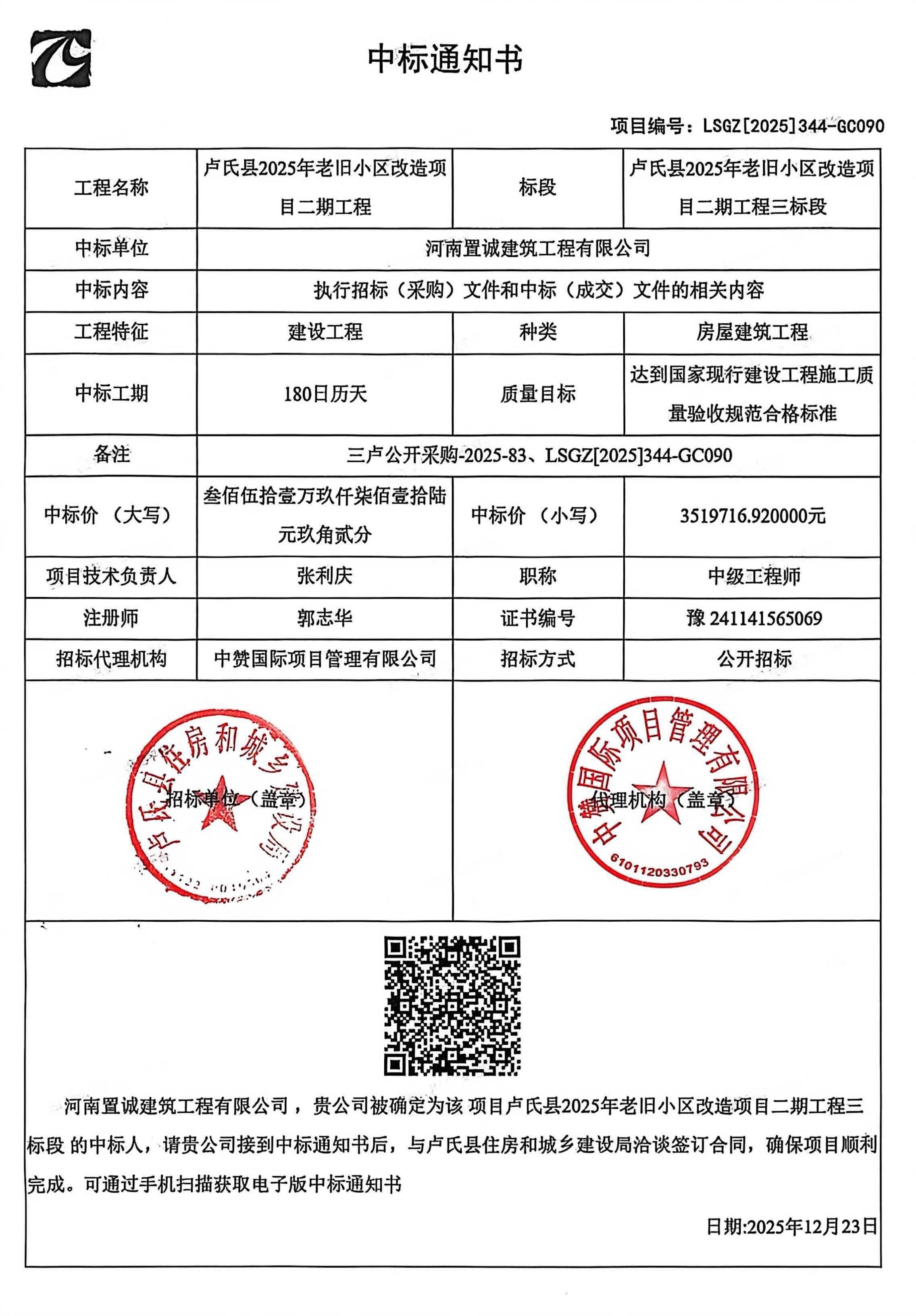 | 二、合同名称:卢氏县****年老旧小区改造项目二期工程三标段 | ||||||||||||