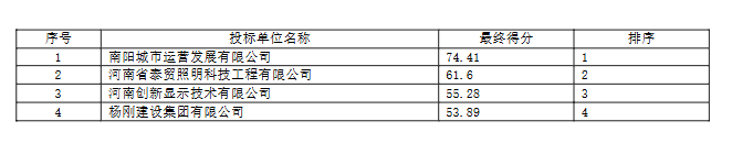 | 本次中标公告在《河南省政府采购网》南阳市公共资源交易中心网上发布,中标公告期限为*个工作日 。 | |||||||||||||||||||||||||||||||