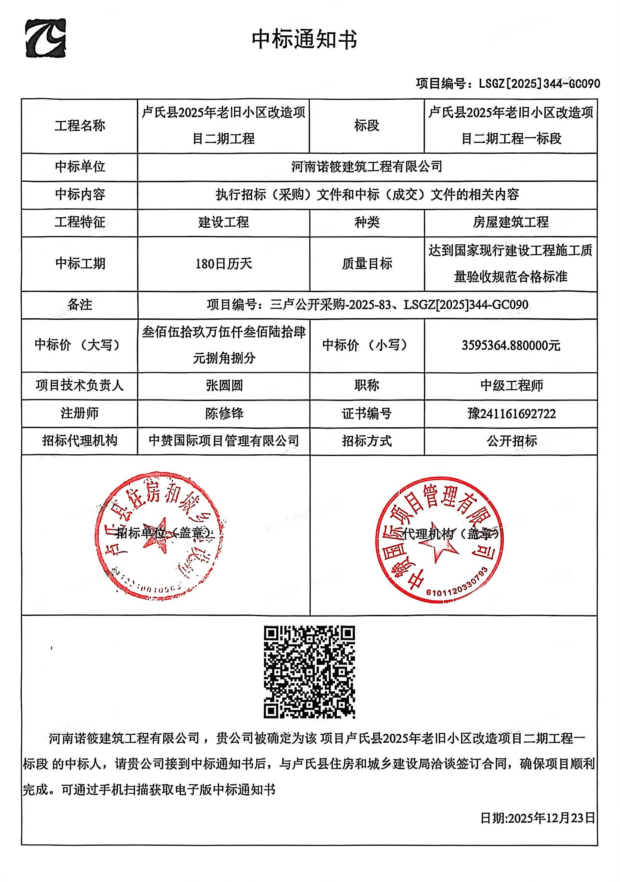 | 计划工期:***日历天; 建设地点:卢氏县城区; | ||||||||||||