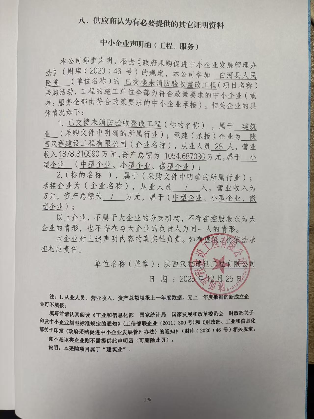 白河县人民医院已交楼未消防验收整改工程中标(成交)结果公告