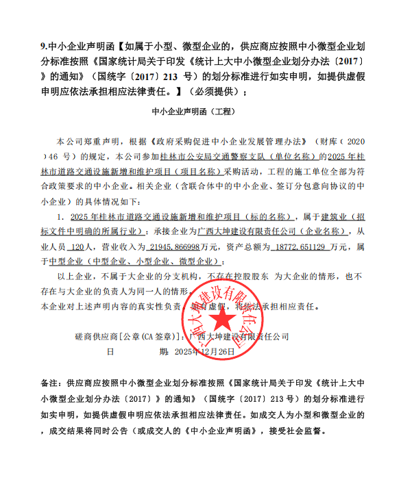 北京国金管理咨询有限公司关于2025年桂林市道路交通设施新增和维护项目中标(成交)结果公告