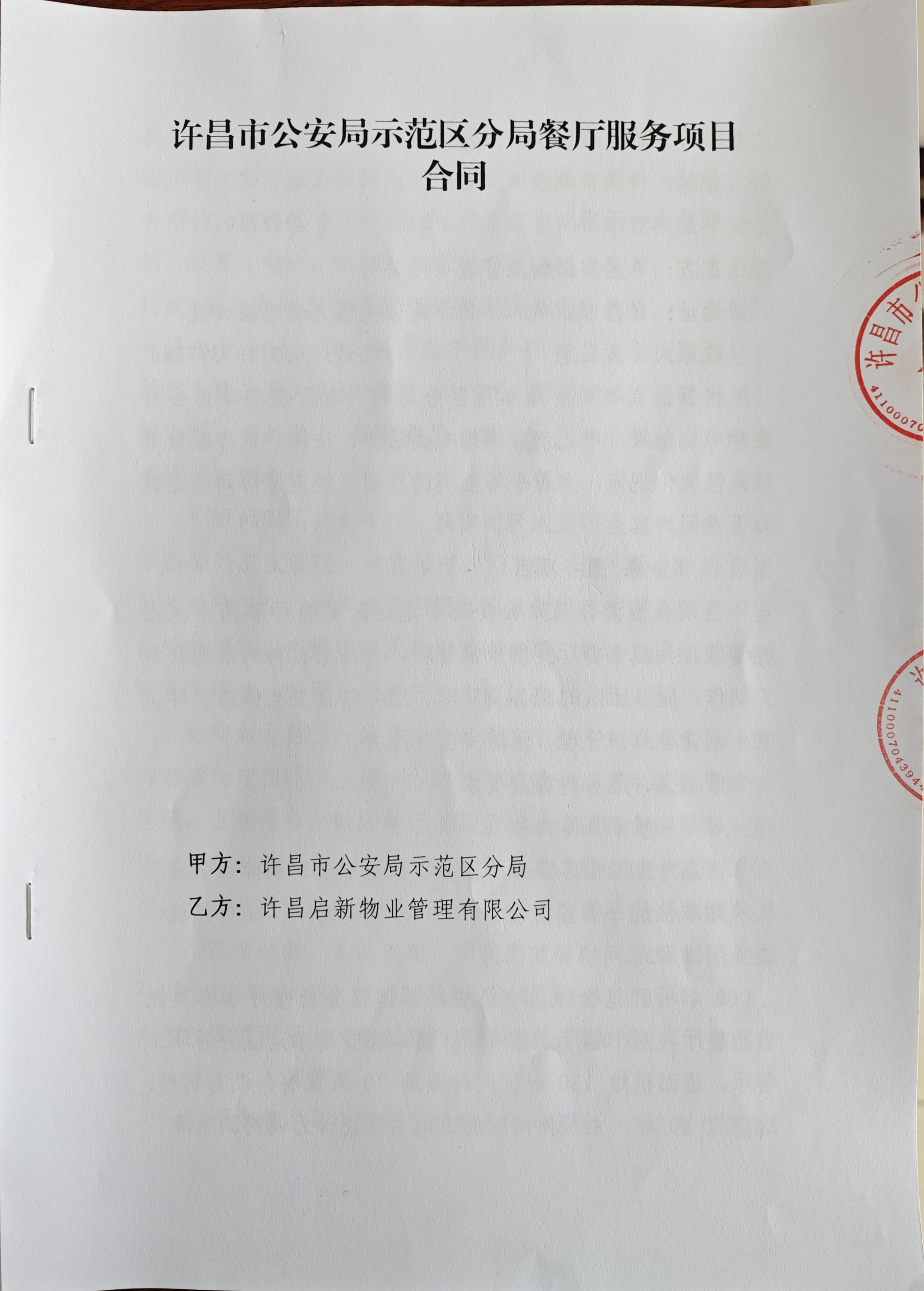| 二、合同名称:许昌市公安局示范区分局购买餐厅服务项目 | ||||||||||||