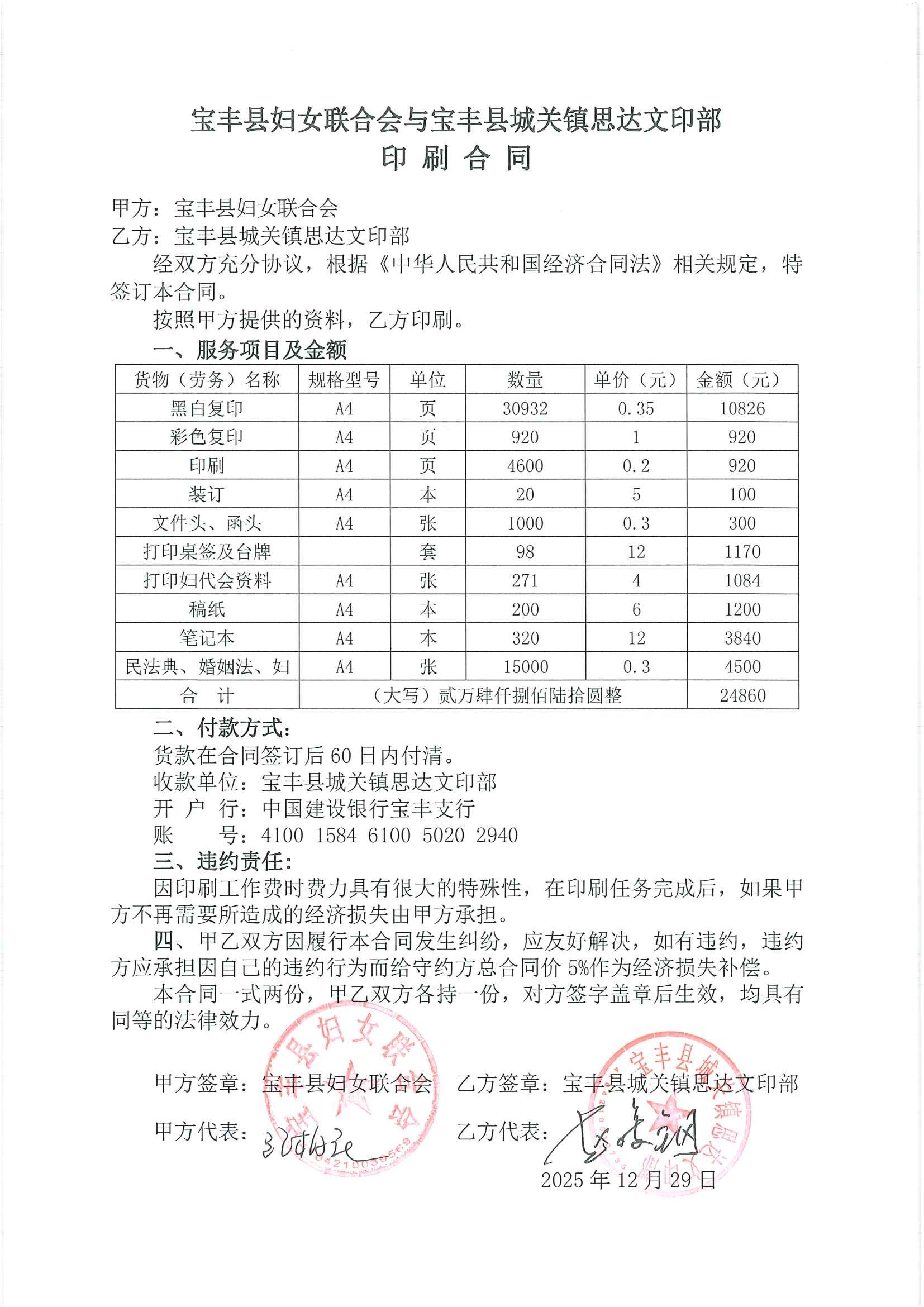 | 二、合同名称:宝丰县妇女联合会文印费项目 | ||||||||||||