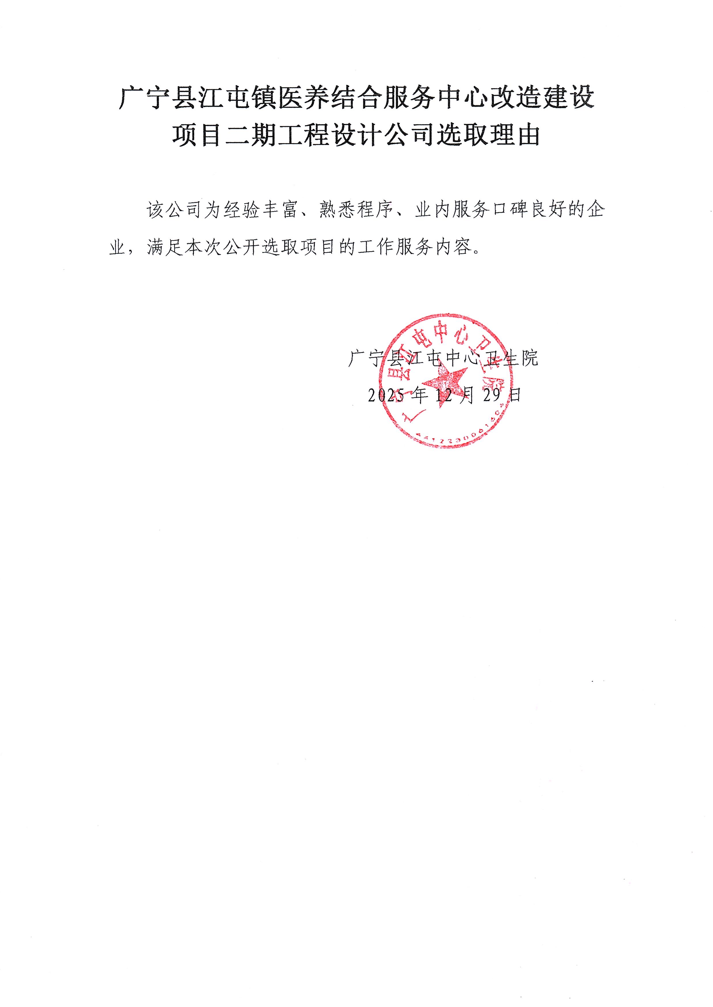 采购广宁县江屯镇医养结合服务中心改造建设项目(二期)工程设计服务(第二次)中选公示