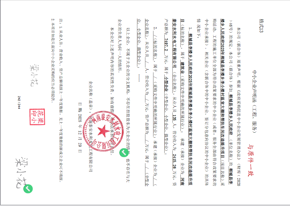 郸城县李楼乡人民政府2025年郸城县李楼乡李小楼村温室大棚和帮扶车间改造提升项目-成交公告
