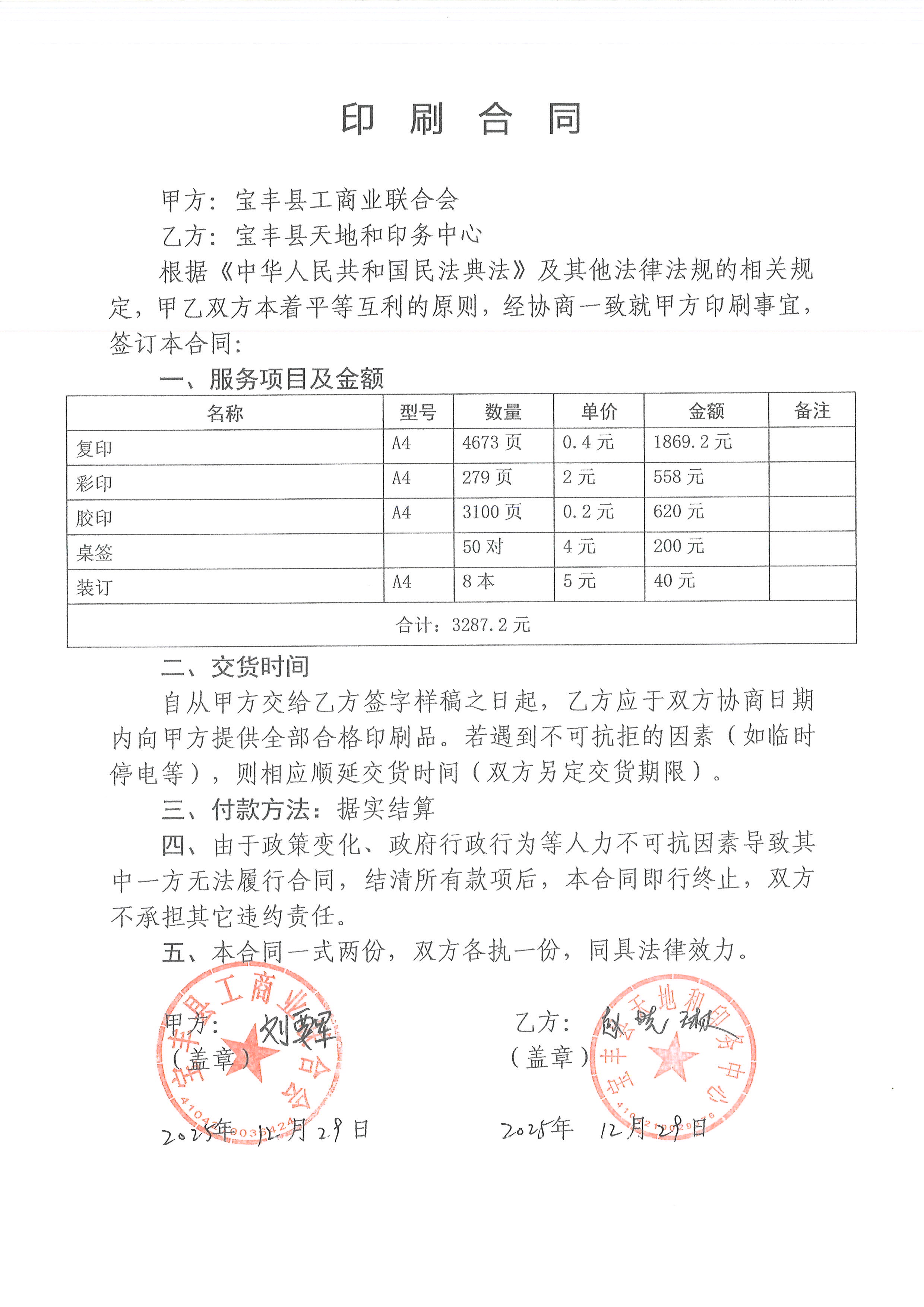 | *.供应商(乙方):宝丰县天地和印务中心 | ||||||||||||