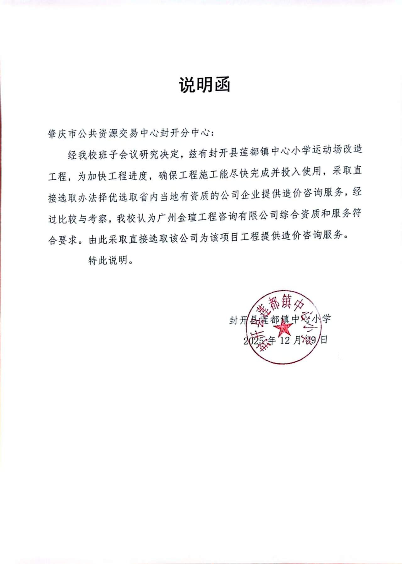 关于【封开县莲都镇中心小学运动场改造工程】中选结果的公告