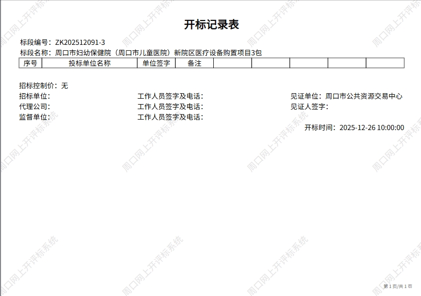 | *、采购项目名称:周口市妇幼保健院(周口市儿童医院)新院区医疗设备购置项目 | ||||||