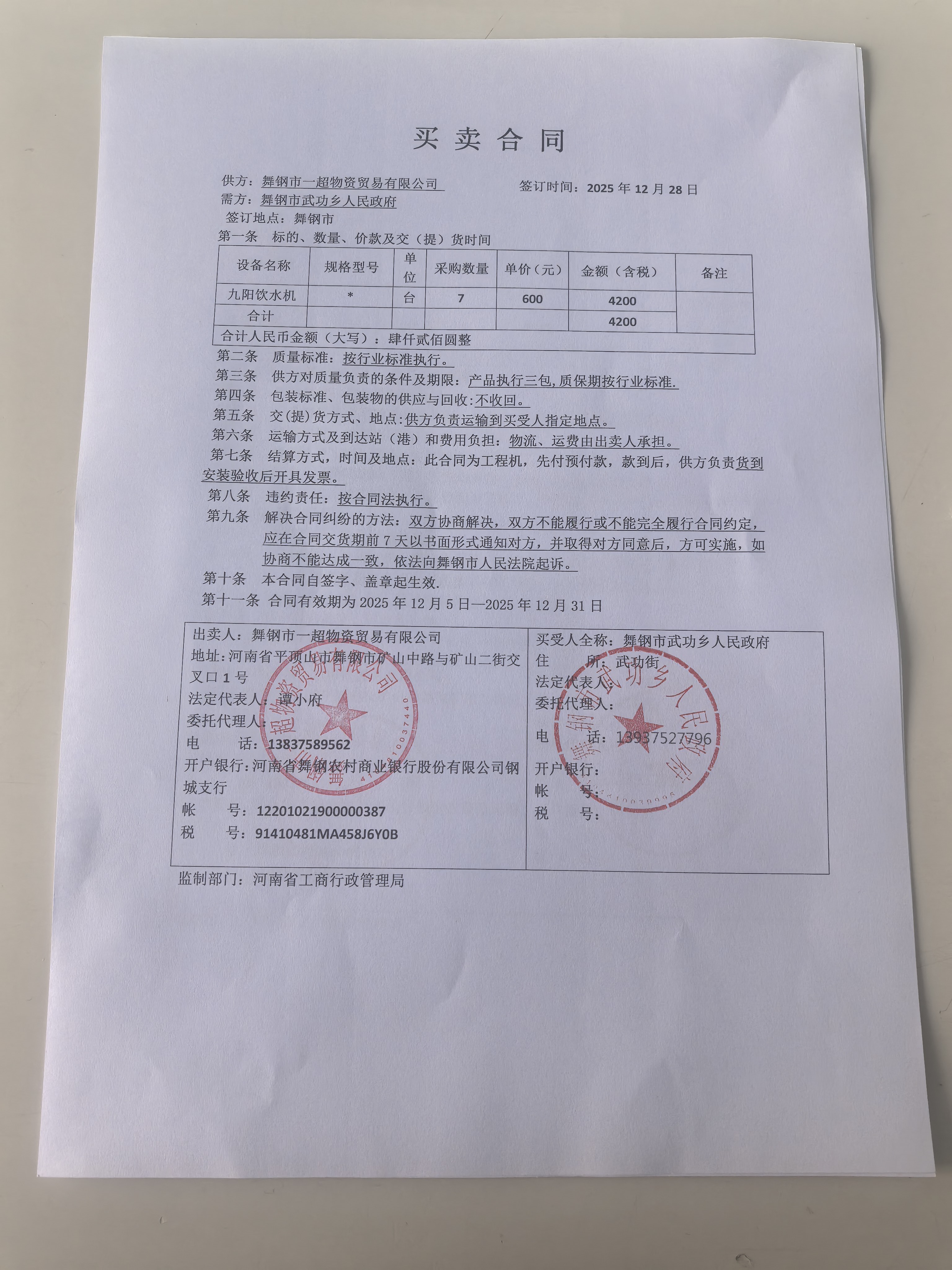 | *. 采购人(甲方):舞钢市武功乡人民政府 | ||||||||||||