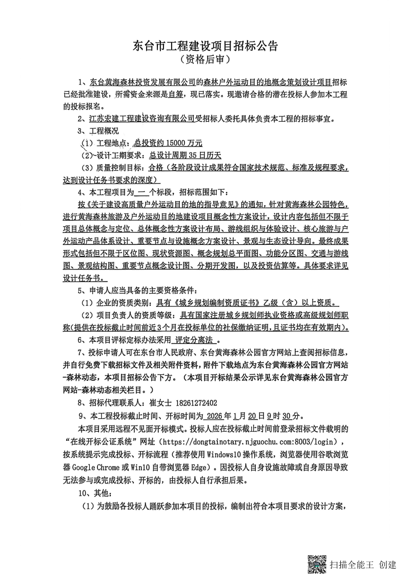 黄海森林公园关于森林户外运动目的地概念策划设计项目招标公告