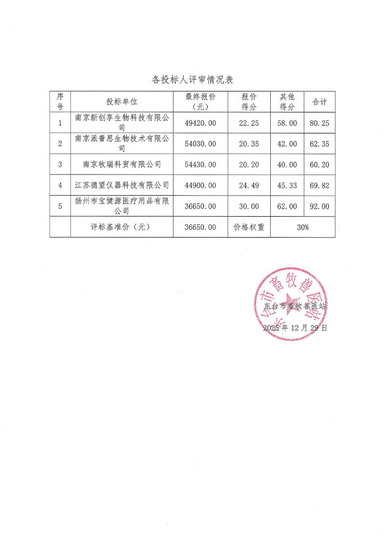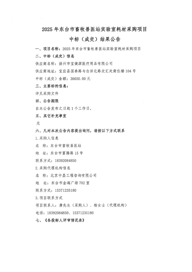 2025年东台市畜牧兽医站实验室耗材采购项目中标(成交)结果公告