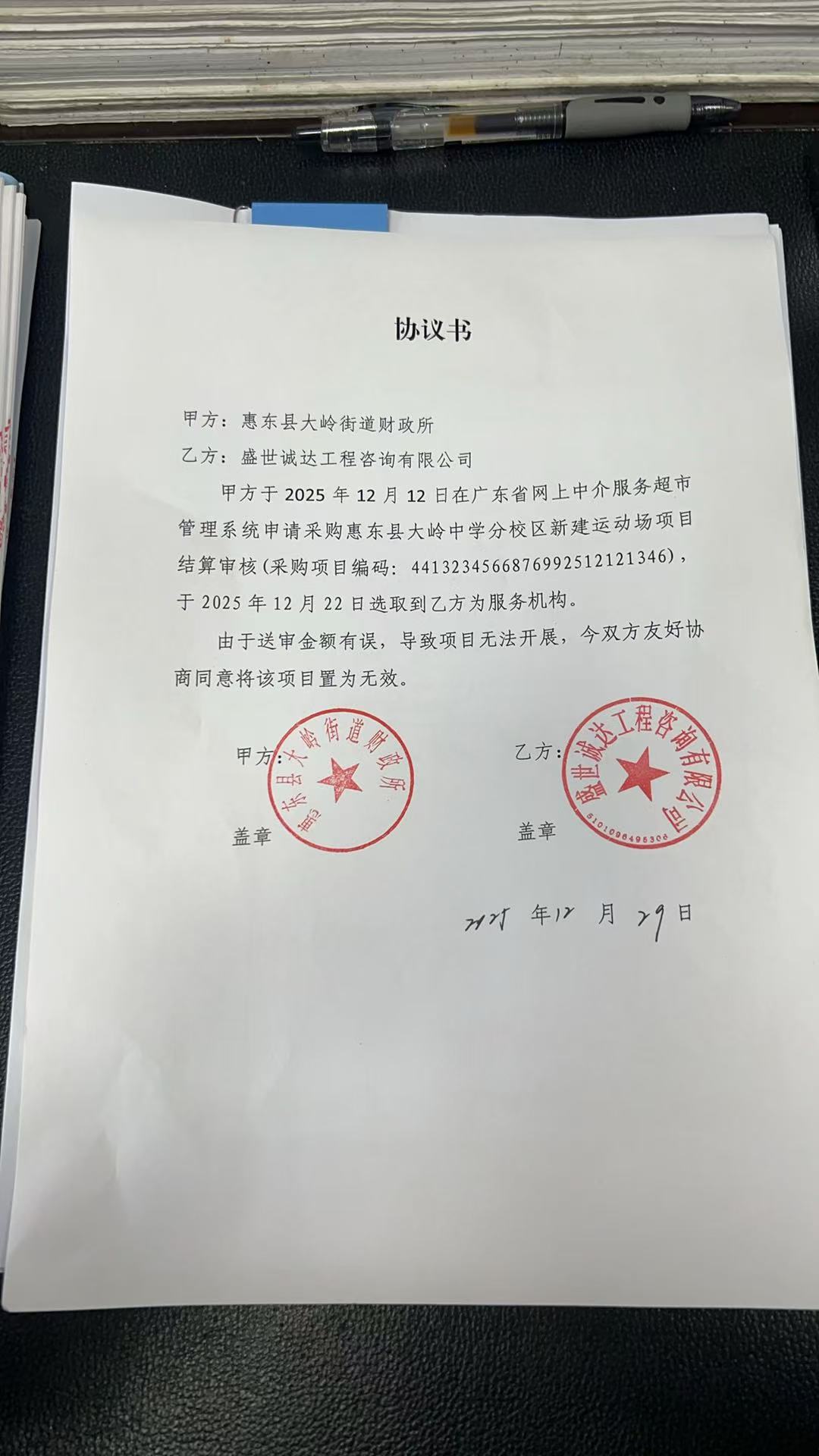 惠东县大岭中学分校区新建运动场项目结算审核采购失败项目公示