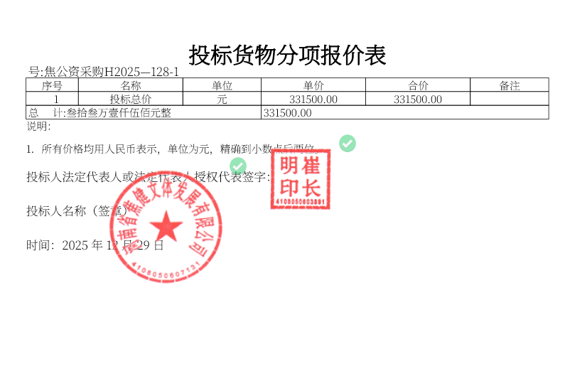 | 本次中标公告在《河南省政府采购网》、《焦作市政府采购网》、《焦作市公共资源交易中心网》上发布,成交公告期限为*个工作日 。 | |||||||||||||||||||||||||||||||