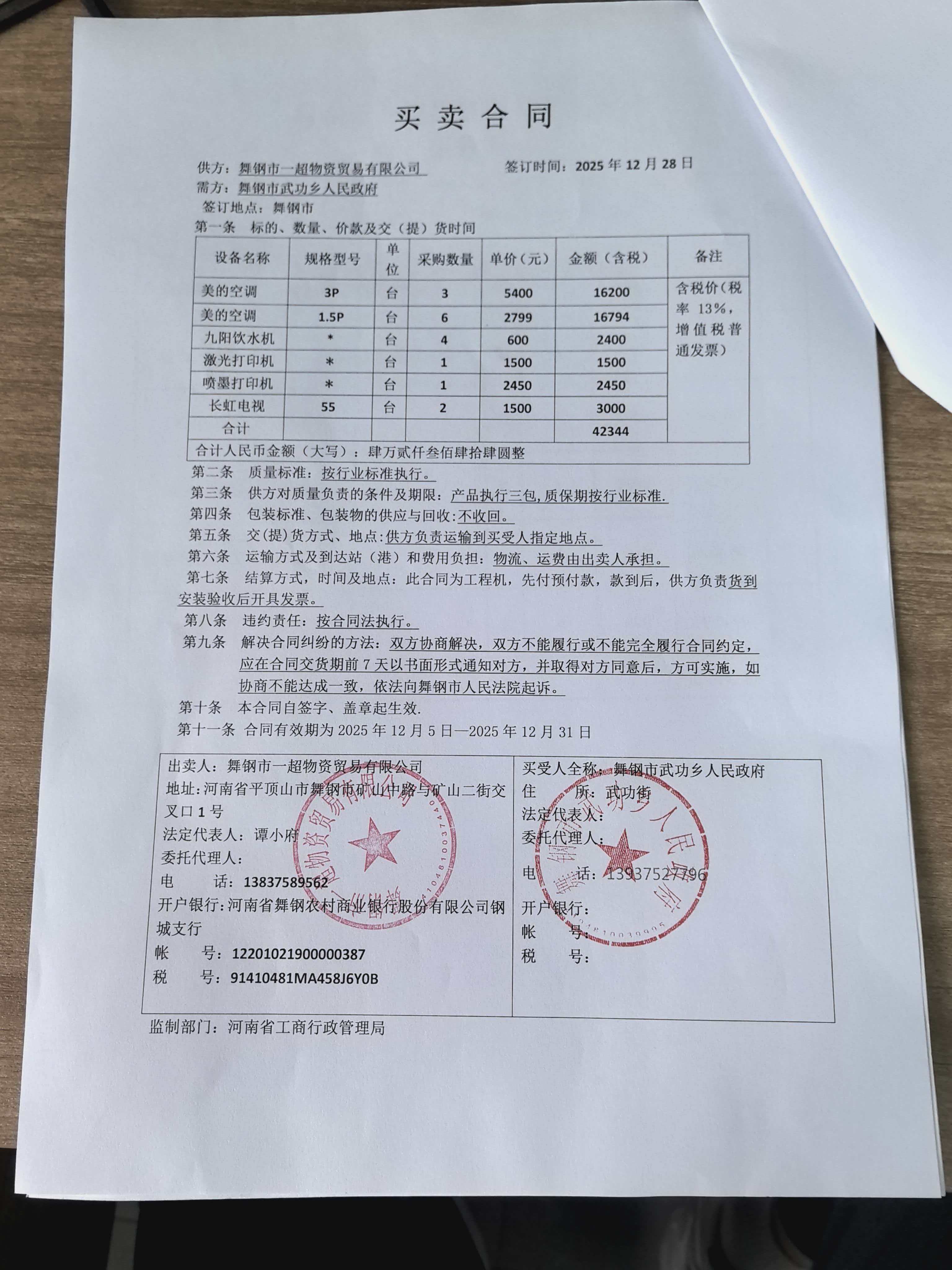 空调采购及办公用品采购
