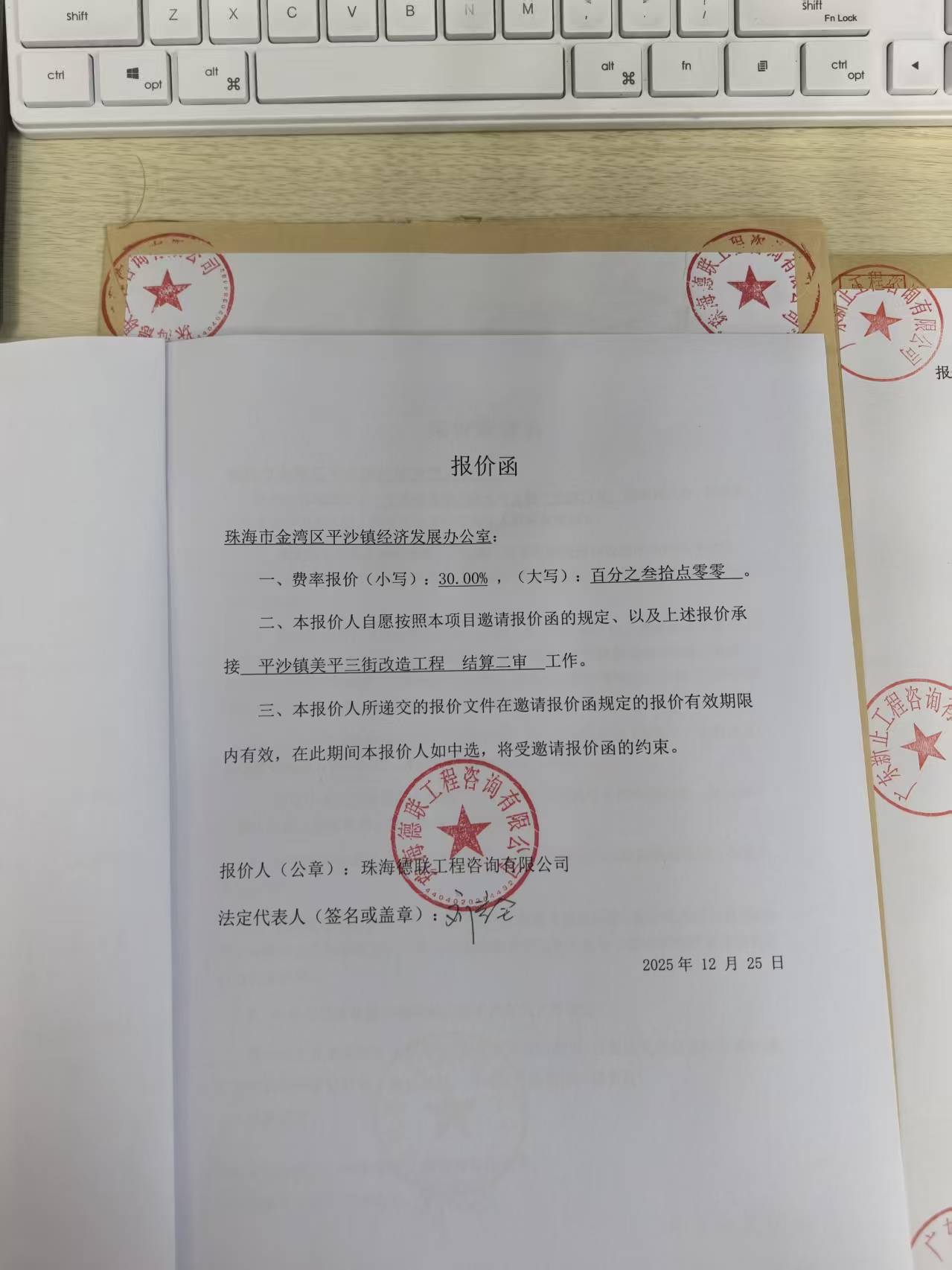 关于【平沙镇美平三街改造工程(二审) 采购结算审核服务】中选结果的公告