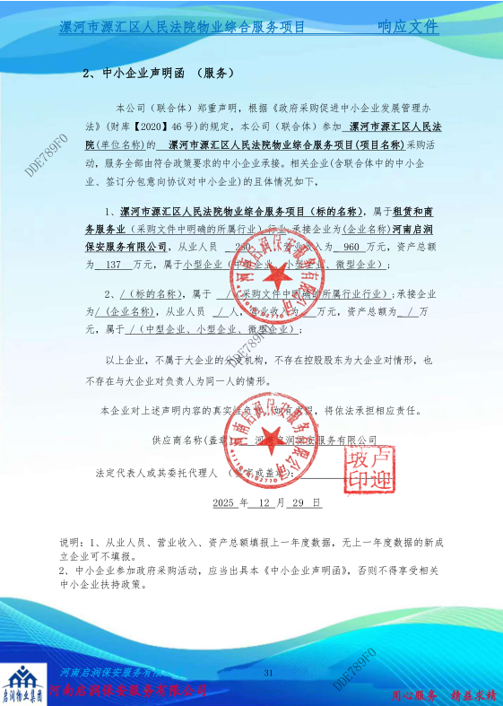 | *、采购项目名称:漯河市源汇区人民法院物业综合服务项目 | |||||||||||||||||||||||||||||||